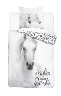 Pościel bawełniana młodzieżowa, wzór biały koń, 160x200 cm