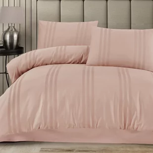 Pościel 220x200 z naturalnej miękkiej BAWEŁNY kolor różowy w żakardowe pasy