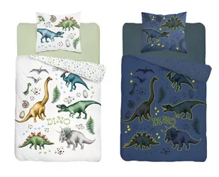 Pościel bawełniana świecąca w ciemności 140x200 Fluo z dinozaurami