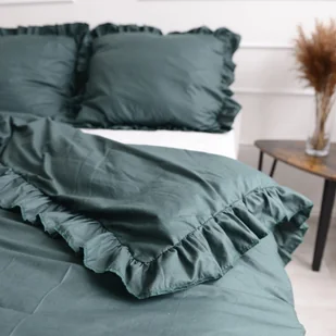 Pościel bawełniana z falbanką - butelkowa zieleń [Rozmiar: 200/200 i 2x70/80]