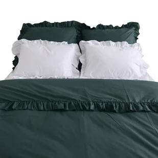 Pościel Bawełniana Z Falbanką Komplet Do Sypialni + 4 Poduszki 160X200 Butelkowa Zieleń Biel