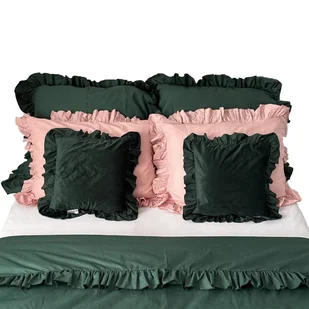 Pościel Bawełniana Z Falbanką Komplet Do Sypialni + 6 Poduszek 180X200 Cm Butelkowa Zieleń Brudny Róż