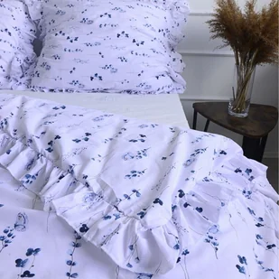 Pościel bawełniana z falbanką - niebieska łąka [Rozmiar: 180/200 i 2x70/80]