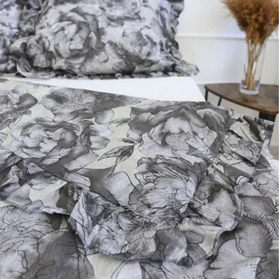 Pościel bawełniana z falbanką - szare kwiaty [Rozmiar: 200/200 i 2x70/80]