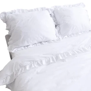 Pościel Bawełniana Z Falbanką Zestaw Komplet Do Sypialni Biała 220X200 Cm + 2 Poduszki 70X80 Cm