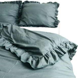 Pościel Bawełniana Z Falbanką Zestaw Komplet Do Sypialni Butelkowa Zieleń 160X200 Cm + 2 Poduszki 70X80 Cm