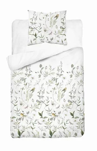 Pościel biała z zielonymi gałązkami i ptakiem – 140x200 – kolekcja Naturalis
