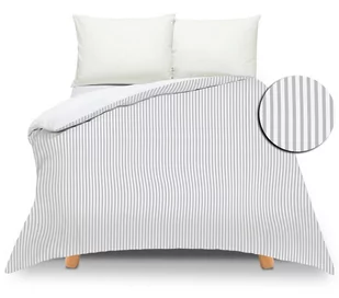 BELLA STORIA POŚCIEL DWUSTRONNA DUALE PASKI-BIAŁY 160X200 Z TORBĄ Komplet pościeli z kolekcji Duale to idealne rozwiązanie dla osób, które szukają prostych i nowoczesnych rozwiązań do swojej sypialni. Dwustronna pościel - z jednej strony w paski szare i białe, z drugiej biała - jest elegancka i delikatna w dotyku. Pościel została wykonana za 100% bawełny - materiał posiada jednorodną powierzchnię i cechuje się wysoką jakością przędz. DOPASUJ ROZMIAR Standardowo komplet pościeli składa z poszwy na kołdrę w rozmiarze 160x200 cm oraz dwóch poszewek w rozmiarze 70x80. Jeżeli rozmiar oferowanej pościeli jest jednak dla Ciebie za duży, to możemy ją bezpłatnie zmniejszyć do dowolnie wybranego rozmiaru (np. poszwę do rozmiaru 150x200 cm, a poszewkę do rozmiaru 50x60 lub 50x70).