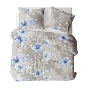 Pościel flanelowa 160x200 1324N szara niebieska kwiaty na guziki Flanela Komfort