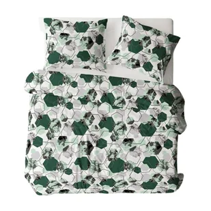 Pościel flanelowa 160x200 1612N biała zielona geometria na guziki Flanela Komfort