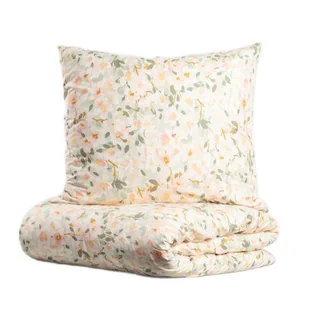 • Wzór w pastelowe kwiaty i liście • Miękka i lekka mikrofibra • W komplecie poszewka na kołdrę 220 x 200 cm i 2 poszewki na poduszkę 70 x 80 cm • Zamek wszy...