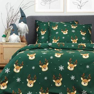 Pościel świąteczna 160x200 renifery kratka groszki czerwona zielona Xmass