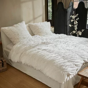 Dzięki tej pościeli słodkie sny są (prawie) gwarantowane. W każdym razie – nostalgiczny design z marszczeniami przeniesie Cię do dawnych czasów, kiedy pościel nie była jedynie prosta i praktyczna, ale zawsze bogato zdobiona, szczególnie w szlachetnych wiejskich rezydencjach. I zawsze wykonywano ją z wysokiej jakości materiałów, które zapewniały wyjątkowe samopoczucie podczas spania. Dlatego ta pościel została uszyta z czystej bawełny, która jest przyjemnie oddychająca i rozpieszcza skórę swoją miękkością. Najlepsze warunki do spokojnego i słodkiego snu! Tradycyjny wygląd jest wręcz doskonały dzięki ładnym wiązaniom za pomocą tasiemek zamykających tę klasycznie białą pościel.