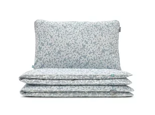 Pościel Mrozy to oryginalny wzór inspirowany naturą. Kształty liści tej ciekawej rośliny zdobią poszwy po obu stronach, na każdej w innym wydaniu. Wierzch pościeli to biały wzór na niebieskim tle. Spód jest negatywem wierzchu - zdobią go niebieskie liście na białym tle. Dzięki temu pościel pięknie prezentuje się na łóżku.