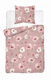 Pościel różowa z kremowymi kwiatami i pąkami – 140x200 – kolekcja Naturalis