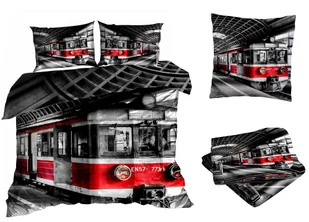 Pościel satyna bawełniana 160x200cm CZERWONY POCIĄG z prześcieradłem 3D