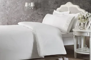 Rozmiar: -poszewka na kołdrę 200x220 -prześcieradło 240x260 -poszewki na poduszki 4szt. 50x70 GUIPURE SATIN 210TC Â Ekskluzywne komplety pościeli z satyny ba...