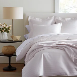 KOMPLET POŚCIELI Z BAWEŁNY SATYNOWEJ 160x200 + POSZEWKA 70x80 PASY KOLOR STONE ✅ Pościel uszyta ze 100% satyny bawełnianej jest lekka i przewiewna, dlatego i...