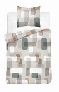Pościel satynowa 140x200 beżowo-szara w geometryczne kształty – Satin Stories