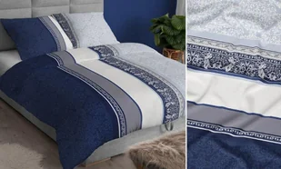 Pościel satynowa 140x200 granatowa geometria zapinana na suwak KARO Satin