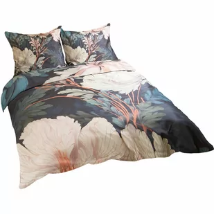 Pościel satynowa 140x200 Kwiaty czarna pudrowa SATYNLOVE PREMIUM