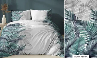 Pościel satynowa 140x200 turkusowa liście zapinana na suwak KARO Satin