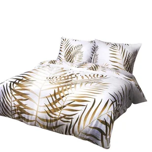 Pościel 160x200 bawełniana o gładkiej powierzchni złote liście palmy biała KOMPLET POŚCIELI 160x200 Z POSZEWKAMI 70x80 NA DWIE PODUSZKI - BAWEŁNA 100% Z TRWA...