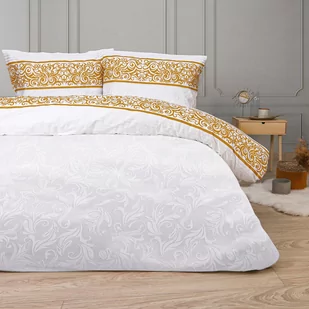 POŚCIEL SATYNOWA 160X200 ANGELICA BIAŁA + ZŁOTA DARYMEXKomplet pościeli z satyny bawełnianej z kolekcji Angelica w rozmiarze 160x200 cm. Jakość i elegancja to najważniejsze walory pościeli z satyny bawełnianej. Tkanina stosowana do produkcji kompletu pościeli jest wykonana z najwyższej jakości przędz, co powoduje, iż posiada jednorodną powierzchnię, a atłasowy splot nadaje jej delikatny połysk. W połączeniu z nowoczesnym i urzekającym wzornictwem oraz odpowiednio nasyconą kolorystyką, pościel cieszy się dużym uznaniem wśród klientów. Pościel jest delikatna i miła w dotyku - nie jest śliska i "zimna", jak w przypadku pościeli z satyny poliestrowej.