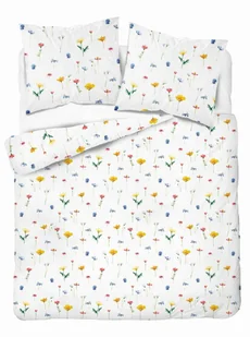 Pościel satynowa 160x200 biała w kolorowe polne kwiaty – Satin Stories