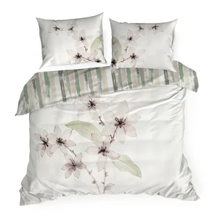 Pościel satynowa 160x200 Bianca biała miętowa pudrowa kwiaty Premium