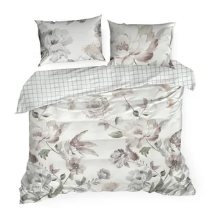 Pościel satynowa 160x200 Rosalia biała beżowa kwiaty Premium