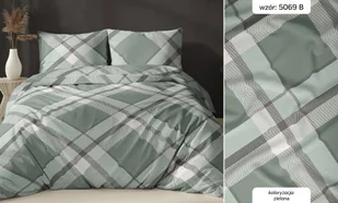 Pościel satynowa 160x200 zielona kratka zapinana na suwak KARO Satin