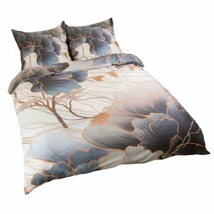 Pościel satynowa 180x200 Kwiaty szara beżowa 12405 SATYNLOVE PREMIUM
