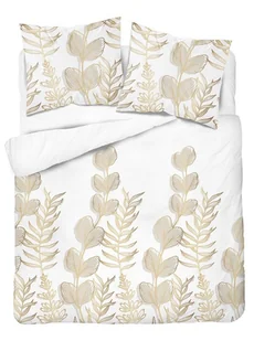 Detexpol Pościel satynowa 220x200 Biała w złoto-beżowe liście elegancki wzór, 100% bawełna 5477 B - Home Satin 71