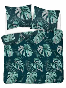 Pościel satynowa 220x200 4528 B turkusowa morska liście monstery Home Satin 131