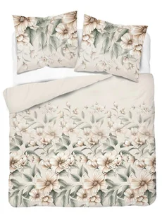 Pościel satynowa 220x200 kremowa zielona bezowa jasna kwiaty liście Home Satin