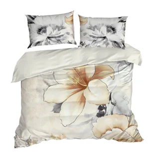 Pościel satynowa PREMIUM19 160x200 Eurofirany biała herbaciana szara duże kwiaty