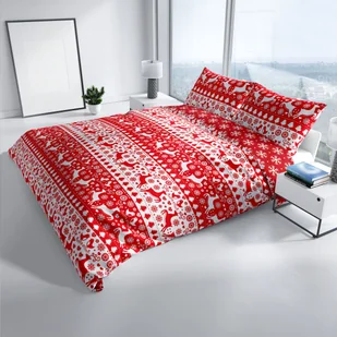 Pościel świąteczna Carbotex, 100% bawełny, 160x200 +2x70x80cm, śnieżynki i renifery