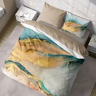 Pościel z bawełny satynowej, Minerals 009, złoty piasek i ocean, 160x200 cm, 3-częściowa