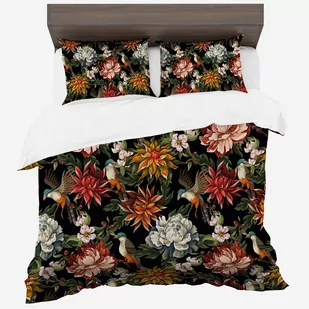 Pościel z bawełny syntetycznej, 140x200, czarna w kwiaty, PMCA-92, 2-częściowa