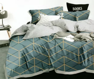 Kolekcja markowej pościeli wykonanej zgodnie z najnowszymi trendami światowej mody. Kupują Państwo bezpośrednio u producenta. Komplet dwustronnej pościeli z bawełny syntetycznej PME-525 Kolorystyka: szaro-ciemnoniebieska Skład: 100% mikrowłókno Poszwa i poszewki z zapinaniem suwakowym Prześcieradło występujące w kompletach 4-częściowych jest bez gumki Opakowanie: