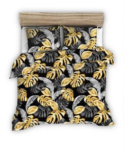 Pościel z kory 140x200 czarna w szare złote egzotyczne liście