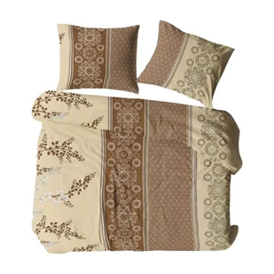 Pościel z kory 160x200 beżowa brązowa kremowa liście paski ornamenty 1444N Bielawa KARO