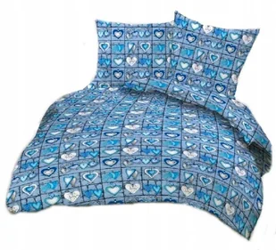 pościel z kory 200x220 + 2 poszewki K 82-1 serca zawieszki niebieskie