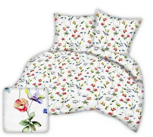 Zachowuje trwałość i świeżość przez długi czas. Wzór kwiatów przypominających obraz malowany techniką akwareli przeniesie nas w krainę marzeń, poczujemy się magicznie i beztrosko. Poszwa na kołdrę i poszewki na poduszki zapinane są na praktyczny ekspres. W skład zestawu wchodzą: poszwa na kołdrę 200 x 220, dwie poszewki na poduszkę 70 x 80.