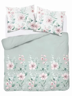 Pościel z mikrofibry 220x200 Miętowa Różowy kwiatki