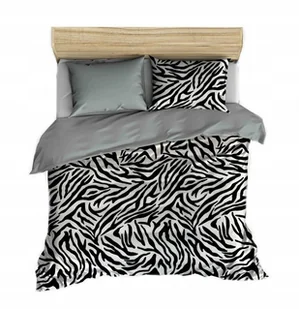 pościel z polaru 220x220 + 2 poszewki P 305-2 DUO zebra czarna / szary