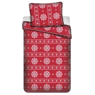 Świąteczna pościel, bawełniana pościel zapinana na zamek 140x200 cm Bawełniana czerwona pościel z białymi świątecznymi wzorami idealnie wpisuje się w zimowy ...