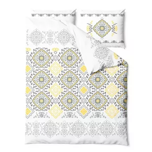 Pościel satynowa Zaratex 160x200 Sunshine Glamour biały żółty szary ornamenty orientalne Home Satin 1