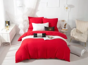 ZESTAW POŚCIELI QUEEN Z BIZĄ LAMÓWKĄ 220x200 + 2 POSZEWKI POŚCIEL W KOLORZE CZERWONYM